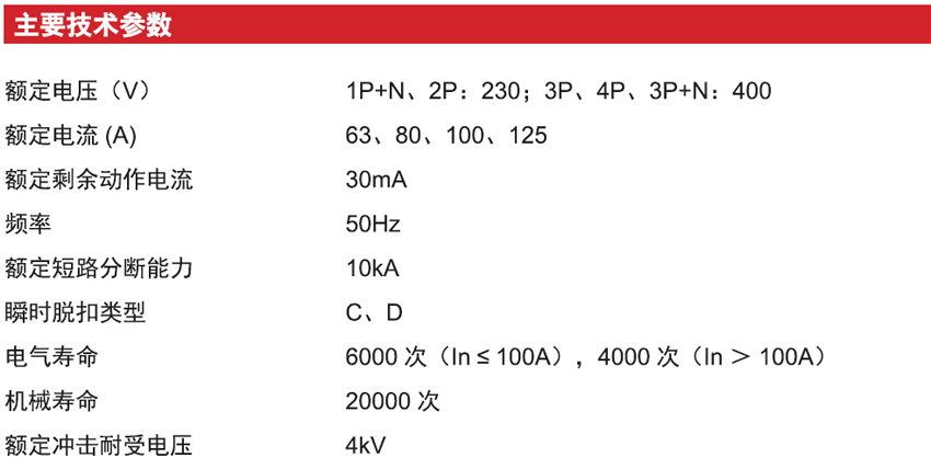 DELIXI德力西CDBHLE-125大電流漏電保護(hù)斷路器 產(chǎn)品參數(shù):
