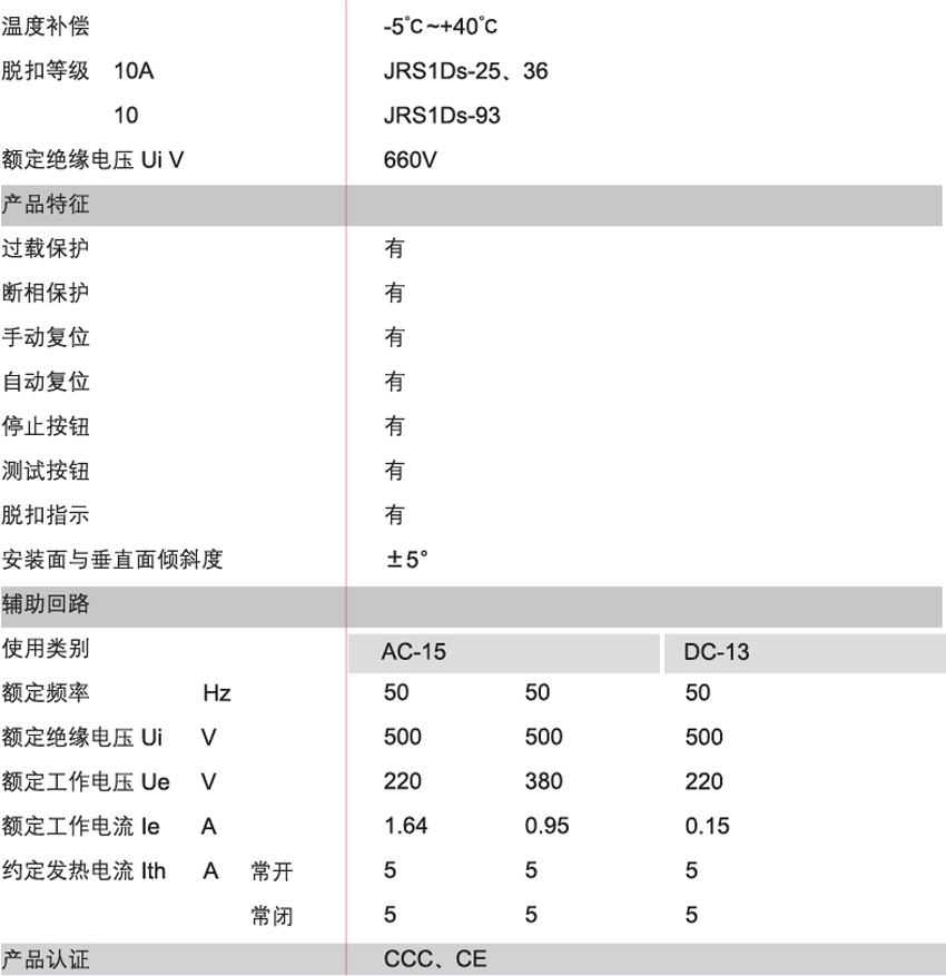 DELIXI德力西JRS1Ds熱過載繼電器 產(chǎn)品參數(shù):