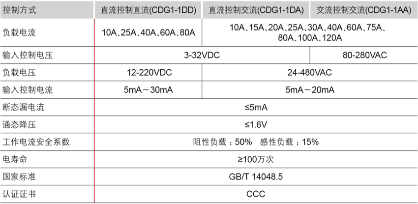 DELIXI德力西CDG1單相固態(tài)繼電器 產(chǎn)品參數(shù):